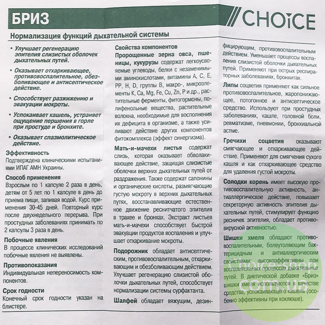 Показати оптові ціниБриз – покращення стану дихальних шляхів Choice. Для дихальної системи. 30 капсул